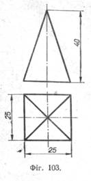 Приклад 2. Побудова фронтальної проекції піраміди, заданої на кресленні (фіг. 103).