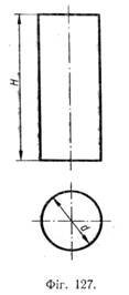 На фігурі 126 показано послідовність побудови ізометрії циліндра, вісь якого вертикальна, а основи — горизонтальні. Розміри циліндра взято з креслення (фіг. 127).