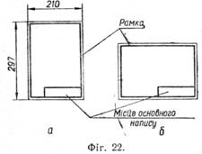 Рамка і основний напис креслення. Кожне креслення мусить мати рамку. У правому нижньому куті креслення розміщується основний напис, або, як іноді його називають, кутовий штамп креслення (фіг. 22).
